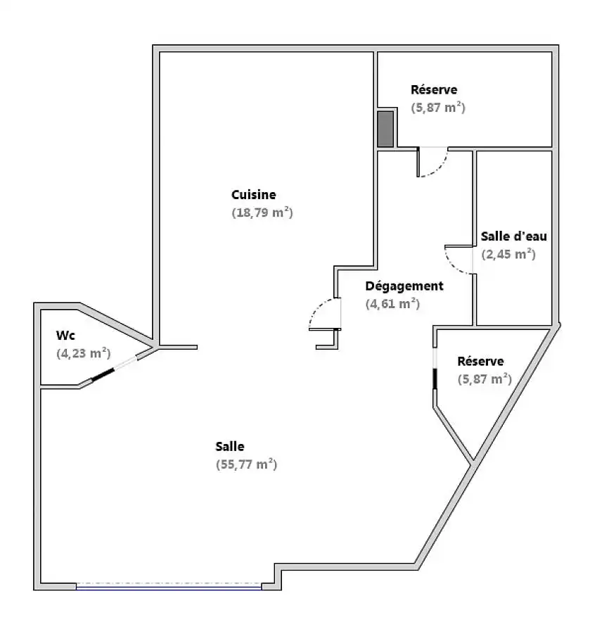 Une réserve de 5,87 m² pouvant servir de chambre froide